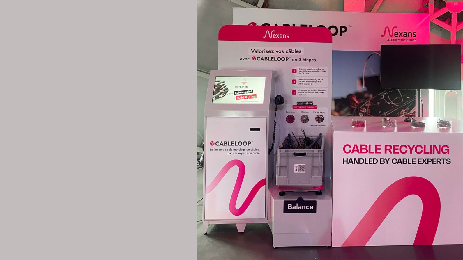 En la agencia, y en 3 sencillos pasos, Nexans compra los restos de cables y alambres eléctricos de sus clientes, se encarga de la logística y el reciclaje, con el fin de reintegrar los materiales reciclados en la fabricación de los cables bajos en carbono del futuro.