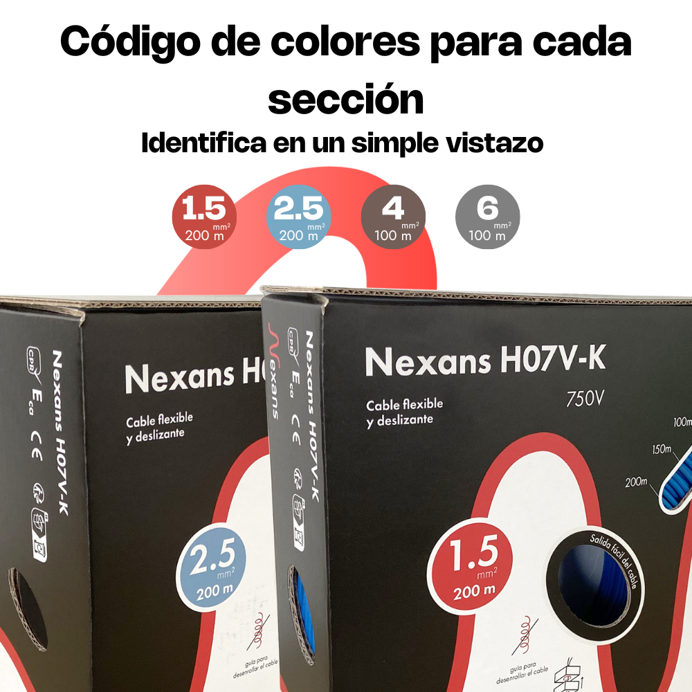 - Un sistema de códigos de color para identificar la sección del cable y su longitud en un solo vistazo
